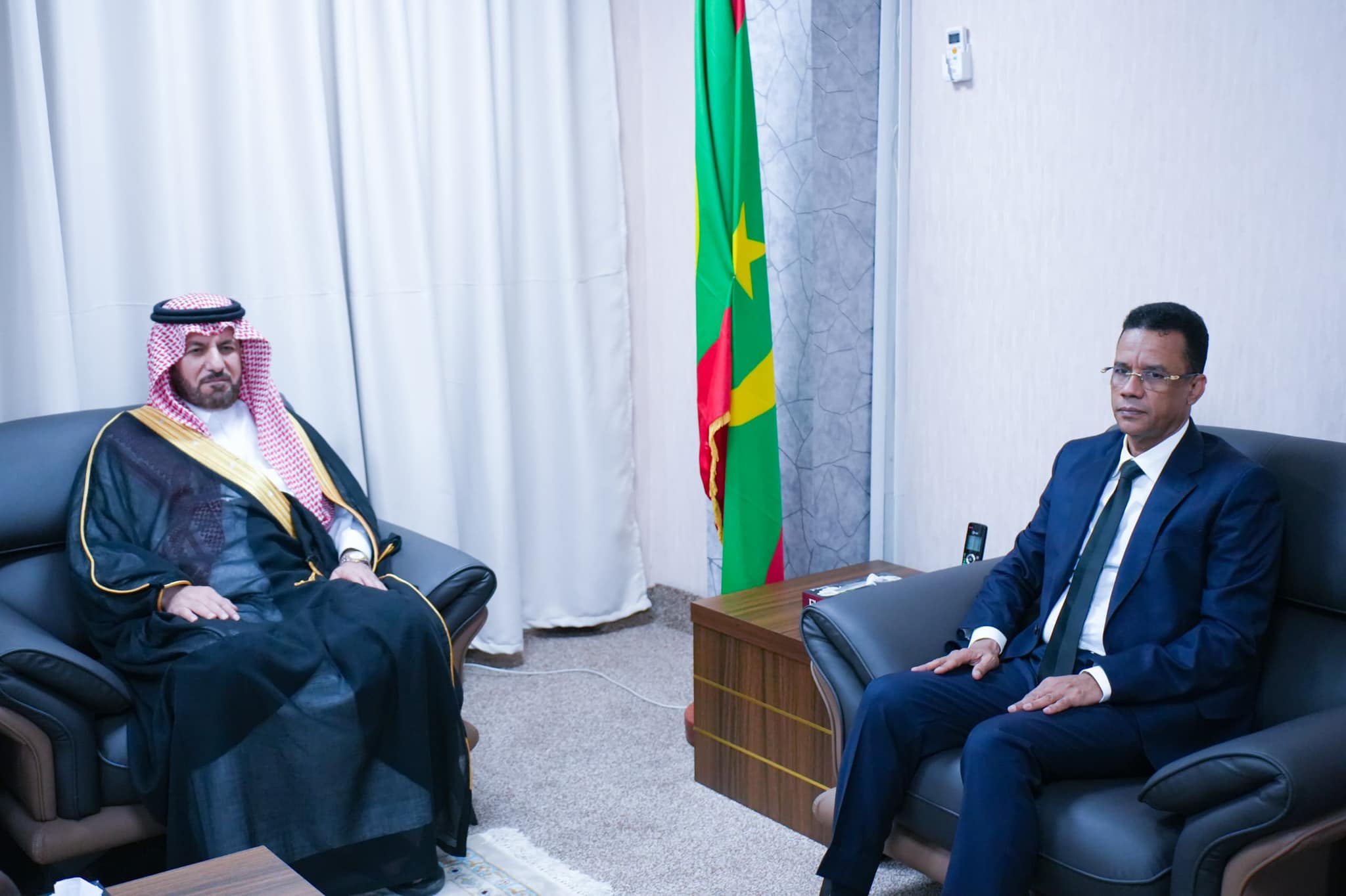 بحث وزير الشؤون الإسلامية والتعليم الأصلي، الفضيل ولد سيداتي ولد أحمد لولي، اليوم الإثنين في مكتبه، مع عبد العزيز بن عبد الله الرقابي، سفير المملكة العربية السعودية المعتمد لدى موريتانيا، سبل تعزيز علاقات التعاون بين ا