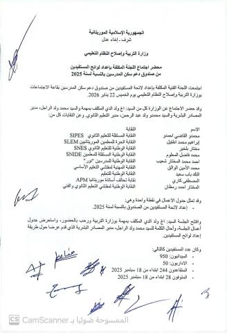 ولفت المحضر إلى أنه بخصوص النقطة المتعلقة بالمتقاعدين فقد رفعتها الوزارة إلى اللجنة الوزارية.