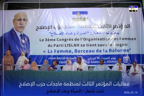 عقدت منظمة نساء حزب الإصلاح مساء السبت 14 فبراير 2026. في العاصمة نواكشوط مؤتمرها الثالث، تحت شعار: “المرأة وعاء الإصلاح”، وسط حضور واسع من قيادات الحزب وجمهور من مناصريه.