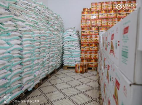 وتتكون السلة الغذائية الموزعة من: السكر، التمر، الحليب المجفف، الزيت والشاي.